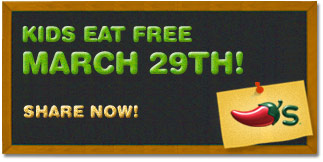 KIDS EAT FREE @ CHILIS TOMORROW 3/29!